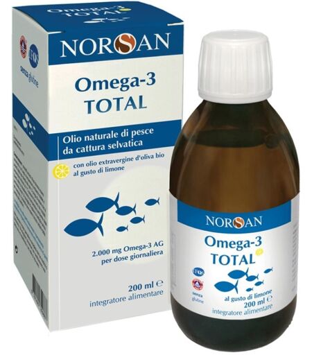 Omega - 3 Total è un integratore alimentare a base di olio di pesce selvatico di alta qualità, non concentrato, e arricchito con olio d'oliva biologico come antiossidante. Ogni dose giornaliera consigliata fornisce 2.000 mg di omega - 3 e 800 UI di vitamina D3, contribuendo al benessere cardiovasco… ...