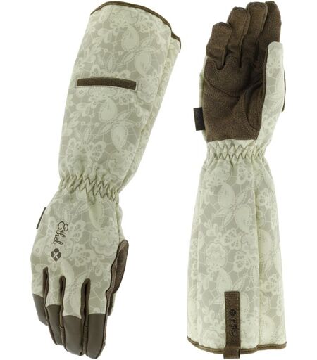 Descrizione I guanti Ethel Garden Rose offrono una resistenza ancora maggiore da spine e rami quando tagliate via i fiori secchi dalle piante. Il palmo e i polpastrelli in pelle sintetica color caramello decorano la delicata stampa floreale in nylon, mantenendo mani e braccia protette ed eleganti. ...