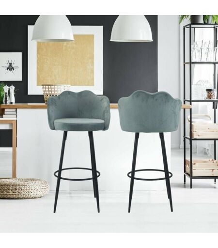 TOSCOHOME Sgabello a conchiglia in velluto grigio e gambe in metallo nero opaco - Orel