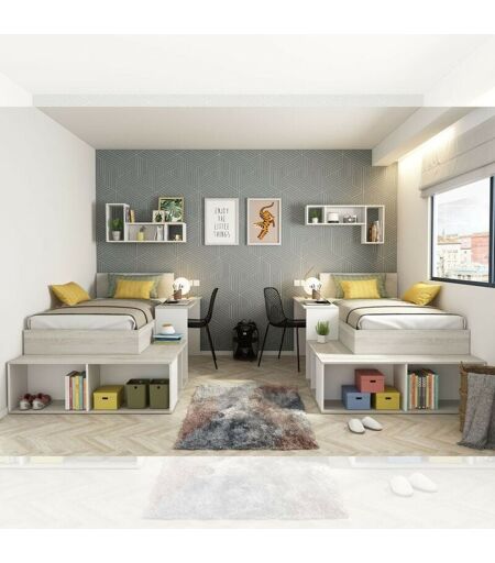 Cameretta con letto singolo e scrivania colore bianco consumato e bianco La cameretta con letto singolo e scrivania colore bianco consumato e bianco è la soluzione perfetta per creare uno spazio funzionale e accogliente per i tuoi bambini. Il letto singolo offre un comodo riposo durante la notte, mentre la scrivania fornisce uno spazio di lavoro ideale per lo studio e le attività creative. Il colore bianco consumato e bianco conferisce un aspetto elegante e moderno alla cameretta, adattandosi facilmente a qualsiasi stile di arredamento. Realizzata con materiali di alta qualità, questa cameretta garantisce durata e resistenza nel tempo. Offri ai tuoi bambini un ambiente confortevole e funzionale con questa cameretta versatile. Caratteristiche: Letto. Scrivania integrata 130x33,4 cm. Cubi contenitori. (possibilità di montarli filo letto, davanti al letto, destra oppure sinistra) Materasso escluso 90x200. Rete non inclusa 90x200 cm Colore bianco consumato e bianco. Materiale in ...