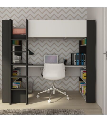 TOSCOHOME Cameretta con letto a soppalco e scrivania sottostante colore bianco e antracite
