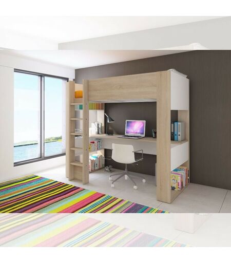 TOSCOHOME Cameretta con letto a soppalco e scrivania sottostante colore bianco e rovere