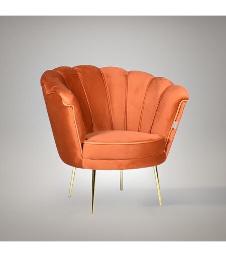 TOSCOHOME Poltrona a conchiglia rivestita in velluto color ruggine e piedi oro - Orel
