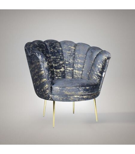 TOSCOHOME - Poltrona a conchiglia rivestita in velluto antracite e fantasia oro - Orel