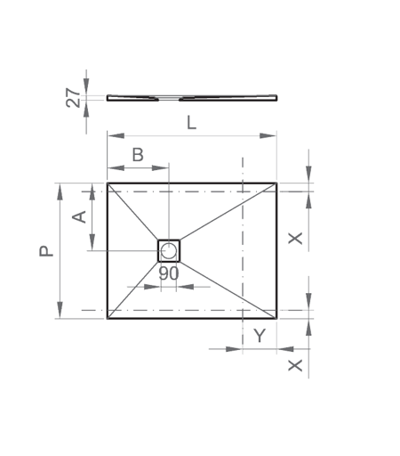 ERCOS Piatto doccia Rettangolare 70x120cm serie Stone BPMAROSTON7012 Bianco Opaco Marmoresina Con piletta Geberit diam. 90