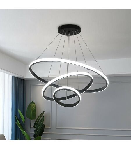 GOECO - Moderna plafoniera a sospensione led Lampadario in alluminio 76W a forma di cerchio a 3 anelli regolabile Plafoniera a sospensione