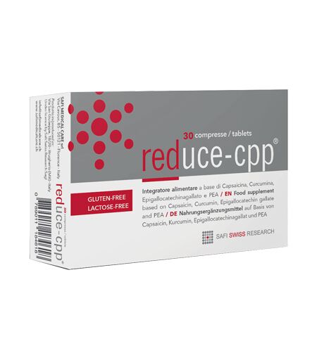 Reduce - cpp - Descrizione Integratore alimentare a base di capsaicina, curcumina, epigallocatechinagallato e PEA. Ingredienti Palmitoiletanolamide, tè verde foglie (Camellia sinensis Kuntze) e.s. tit. 98% polifenoli, 60% catechine e 50% epigallocatechingallato, curcumina da Curcuma longa L.; agent… ...