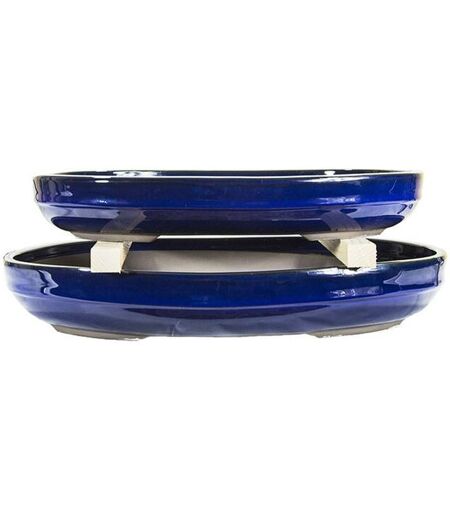 Vasi per bonsai Giapponesi Morrisan ovali in gres smaltati blu (Set da n.2 pezzi) - B00-15 ...