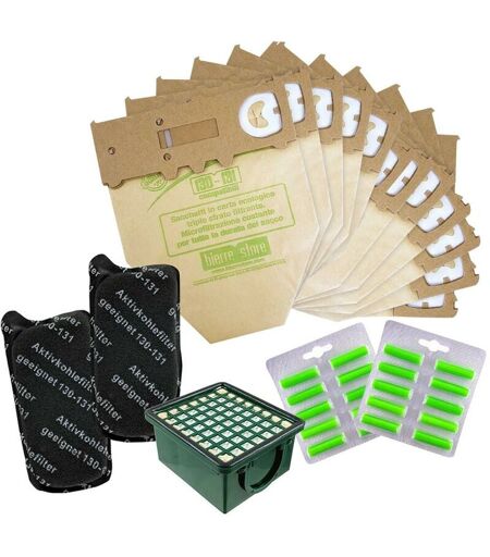 Kit sacchetti Folletto VK 130 VK131 I sacchetti Folletto vk 130 - 131, fatti con speciale carta ecologica ti permetteranno di sfruttare la potenza di aspirazione del tuo folletto fino a totale riempitura del sacchetto. Infatti la micro-filtrazione rimane costante per tutta la durata del sacchetto, garantendovi una totale affidabilità, mentre i profumi forniscono una gradevole profumazione che rende il passaggio del Folletto piacevole. Questo sistema dà una sensazione di pulizia senza eguali, il profumo può essere applicato sia nell’apposito alloggio presente sullo sportello posteriore dell’aspirapolvere, sia buttandolo a terra con successiva aspirazione attraverso la macchina stessa, in questa maniera il profumino viene aspirato e risiederà nel sacchetto insieme alla polvere e, in combinazione con il filtro Hepa, impedirà al cattivo odore di polvere di fuoriuscire dal Folletto. La sostituzione del filtro HEPA è consigliata ogni anno, infatti sostituendolo a cadenza annuale garantirà ...
