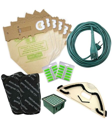 BIERRE STORE - Sacchetti vk 131 vk 130 12p +20 profumi + 2 filtri +1 hepa +cavo 10m + spazzola compatibili