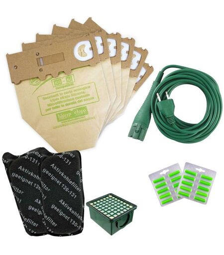 BIERRE STORE - Sacchetti vk 131 vk 130 12pz + 20 profumi + 2 filtri carboni +1 hepa + cavo 10m compatibili