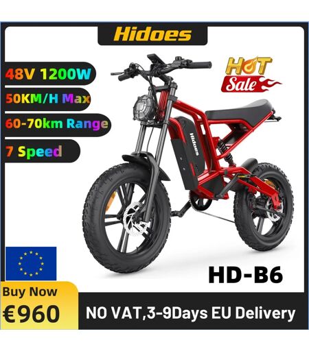 Hidoes B6 Bicicletta elettrica 1200W Motore potente 48V15.6AH Batteria al litio Moto Bici elettrica 20*4 in Fat Tire Neve E-bike ...