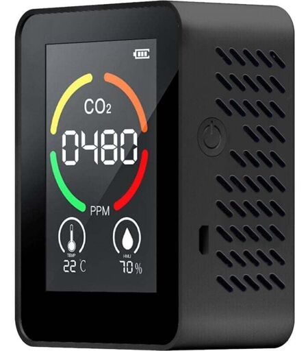 ASUPERMALL Zn-az- 2CO-YY01 Rilevatore di anidride carbonica 3 in 1, temperatura/umidità/CO2, batteria integrata, nero