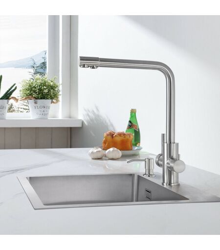 CECIPA Pure-i Rubinetto Cucina 3 Vie Miscelatore Cucina per Acqua Filtro, 3 in 1 Rubinetti Cucina per Acqua Potabile a Doppia Leva, Girevole a 360 °