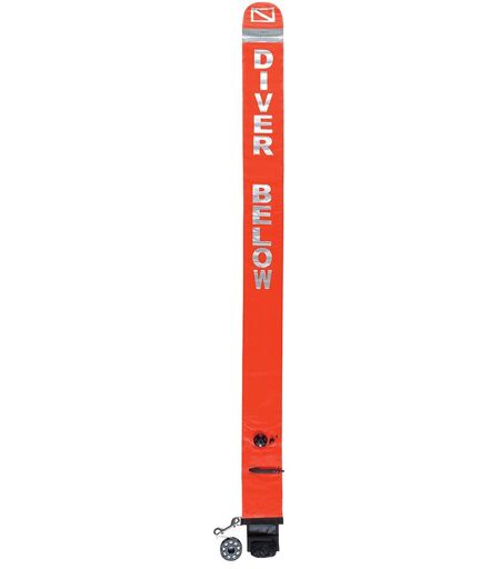 Caratteristiche:Altezza 180 cm.Nastro riflettente Solas 5cm / 2''.Estremamente leggero.`` Diver Below'' Reflective Writing.Tasca a rete integrata per rocchetto.Bobina di 20 m / 66 piedi inclusa.Anello D in acciaio inossidabile.Moschettone Double Ender in acciaio inossidabile.Connettore gonfiaggio orale per tubo Lcd Bcd.Valvola di rilascio sovrapressione.Sistema di chiusura in velcro. ...