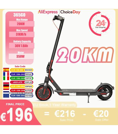 JUICEASE 365GO Scooter elettrico per adulti velocità massima 31 km/h gamma massima 20km per Xiaomi 350W motore 36V con Smart APP EScooter pieghevole