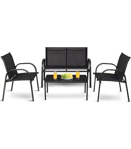 GOPLUS Set con 4 Mobili da Giardino in Textilene, con Struttura in Ferro, 2 Sedie Un Divano e Un Tavolo in Vetro, Tavolo Sedia da Giardino, Tessuto a