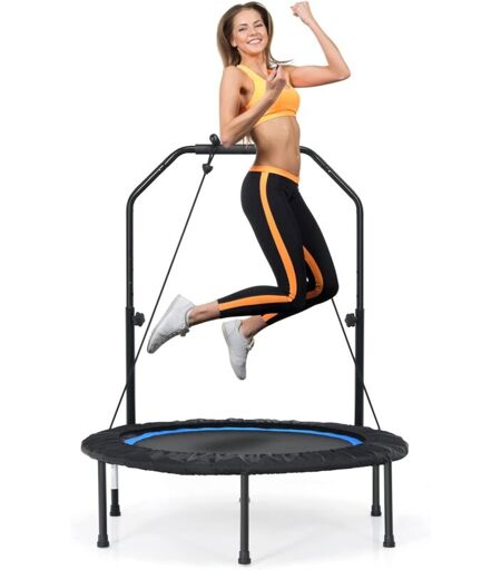 COSTWAY Mini Trampolino Pieghevole 101cm, Trampolino Fitness per Adulti e Bambini,con Maniglia Altezza Regolabile, Capacità di Carico 150 kg