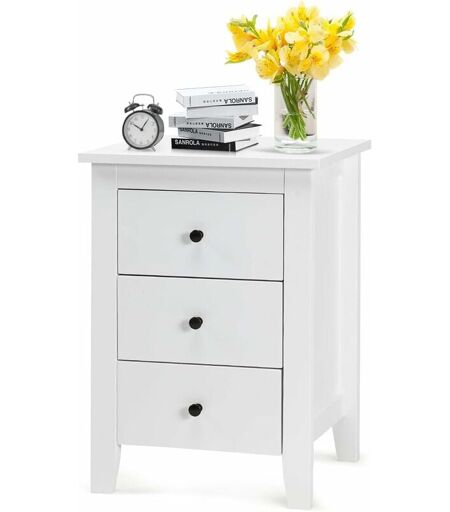 RELAX4LIFE - Comodino Camera da Letto, Comodino Piccolo con 3 Cassetti, Cassettiera in Legno, Mobiletto per Soggiorno/Ufficio (46 x 37 x 65 cm,