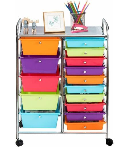 ★Ampio Spazio di Archiviazione★ I 15 cassetti e la partizione superiore del carrello offrono un ampio spazio di archiviazione, quindi puoi posizionare vari oggetti secondo la necessità. Ogni cassetto ha una maniglia rotonda che è facile da aprire. ★Facile da Spostare★ Il carrello ha quattro ruote universali lisce, due delle quali sono dotate di dispositivo di frenatura. Inoltre, la parte superiore del carrello ha un bracciolo per una facile presa. In questo modo, puoi spostare facilmente il carrello da una stanza allaltra e puoi anche fissarlo saldamente secondo necessità. ★Robusto e Durevole★ Il carrello utilizza i tubi metallici spessi che non sono facili da deformare e rompere. Anche il cassetto è realizzato in plastica PP resistente e durevole. Grazie ai materiali di alta qualità, il carrello ha una buona capacità di carico e una lunga durata. ★Adatto a Diverse Situazioni★ Il carrello è di dimensioni compatte e ha una grande capacità per utilizzare efficacemente lo spazio ...
