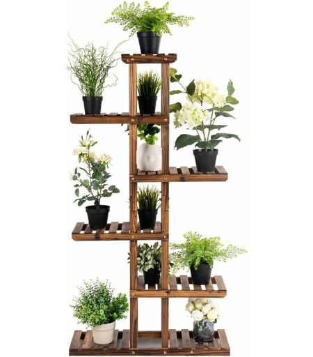 ★Struttura Stabile con Grande Carico★ Questo scaffale è realizzato in legno di abete naturale ed ecologico e con le viti e i bulloni costruisce una struttura super robusta e stabile, che può reggere un peso massimo di 10 kg a ciascuno ripiano. La superficie è verniciata per durare a lungo. ★Design a 6 Strati Spaziosi★ Grazie al design a 6 strati che offre un ampio spazio per esporre i fiori e le piante in vaso, sui ripiani inferiori si possono collocare le piante più grande e pesanti, mentre quelli superiori sono adatti per i fiori più leggeri. Con i ripiani alti e bassi, fornisce un’esposizione ragionevole e perfetta. ★Scaffale Minimalista e Salvaspazio★ Lo scaffale porta pianta è ideale da posizionare in ogni angolo della stanza come il soggiorno, il corridoio, il balcone e il giardino. Grazie al design minimalista, lo scaffale con vari ripiani verticali non occupa molto spazio. ★Esposizione Ideale★ Questo scaffale multifunzionale può essere utilizzato per esporre non solo le piante ...