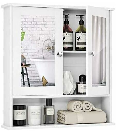 RELAX4LIFE Armadietto con Specchio, Armadio da Parete, Mobiletto Ripostiglio da Bagno con 3 Ripiani, Armadietto con Porta Bianco, Arredo per Bagno, Cucina,