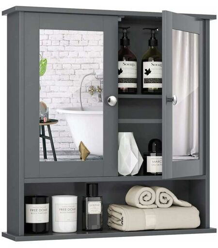 RELAX4LIFE Armadietto con Specchio, Armadio da Parete, Mobiletto Ripostiglio da Bagno con 3 Ripiani, Armadietto con Porta Bianco, Arredo per Bagno, Cucina,