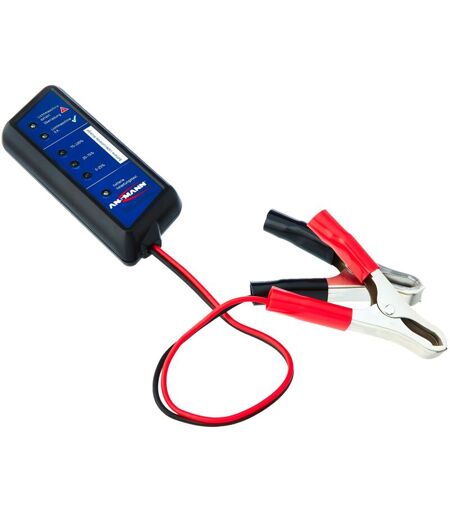 Ansmann - Tester per Batterie Auto 12V - Voltaggio Livello Ricarica Capacità - Facile da Usare Morsetti Colorati - Spie led Protezione Corto Circuito