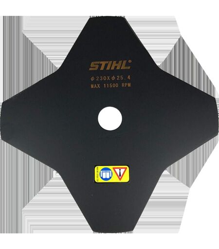 Lama in acciaio da 230 mm con quattro taglienti. Ideale per lavori di sfalcio su ampie superfici con erbacce resistenti. Ammessa solo con protezione ? Foro: 25,4 mm Adatta per i decespugliatori: FS 25-4, FS 44, FS 55, FS 55 R, FS 56 (dopo il 2008), FS 56 R, FS 65-4, FS 70, FS 70 R, FS 74, FS 76, FS 80 (dopo il 1996), FS 83, FS 85, FS 87, FS 88, FS 89, FS 90 (dopo il 2006), FS 91, FS 94, FS 94 R, FS 100, FS 106, FS 108, FS 110, FS 111, FS 120, FS 130, FS131, FS 200 (dopo il 1997), FS 235, FS 240, FS 250, FS 260 R, FR 85, FR 85T, FR 106, FR 108, FR 130, FR 131T, FR 220, FR 350, FR 450, FR 410, FR 460, FR 480, FSA 90 R, FSA 130 R, KM 55, KM 56, KM 85, KM 90, KM 100, KM 110, KM 130, FS-KM ...
