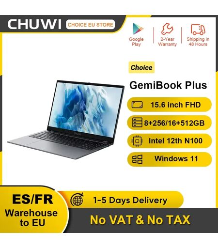 CHUWI GemiBook Plus Laptop Intel 12th N100 15.6 pollici 1920*1080 Schermo FHD 8GB LPDDR5 256GB SSD Windows 11 WIFI 6 M.2 fino a 1T