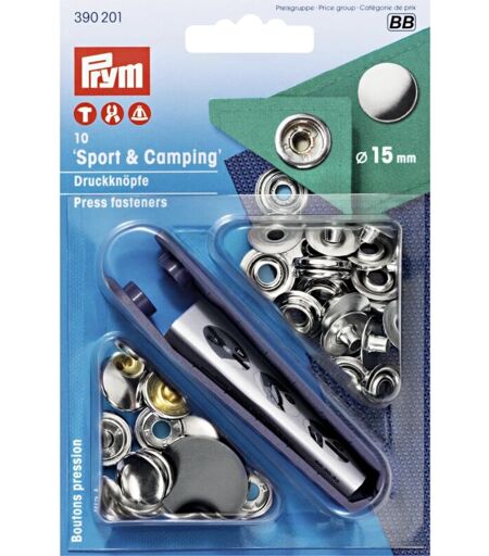 10 Non cucire-stampa Chiusure Sport u. Campeggio Bottoni a pressione 'Sport & Camping' 15 mm argento ...