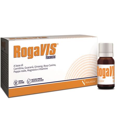 ROGAVIS® - Descrizione ROGAVIS® flaconcini è un complemento alimentare a base di Carnitina Guaranà Ginseng Rosa Canina Pappa reale Magnesio e Vitamine indicato nei casi di ridotto apporto con la dieta o di aumentato fabbisogno di tali elementi. Il Guaranà ed il Ginseng svolgono un'azione toni… ...