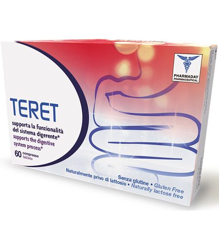 TERET - Descrizione TERET è un integratore alimentare utile a supportare la funzionalità del sistema digerente a base di Boswellia, Mirra e Melatonina. Componenti Estratto di boswellia serrata, mirra e melatonina. Conservazione Condizioni di conservazione: in luogo fresco e asciutto. Validità a con… ...