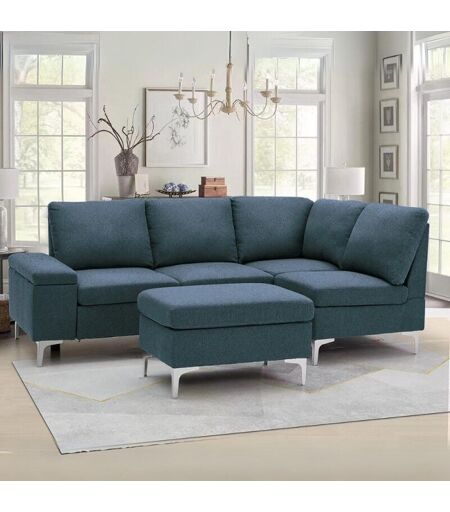 TOSCOHOME - Divano angolare destro tessuto grigio blu con bracciolo porta oggetti 218X172X87H - Dina
