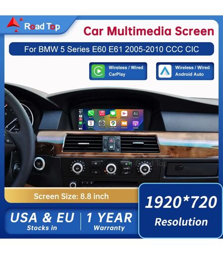 Road Top Lettore multimediale con display Linux touch da 8,8 pollici per BMW Car 5 Series E60 E 612005 -2010 CCC CIC GPS Carplay