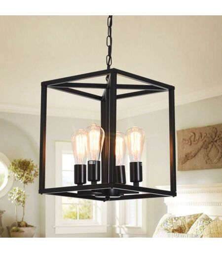GANEED Lampadari a lanterna a 4 luci Lampada a sospensione industriale in metallo, Apparecchio di illuminazione a sospensione rustica nera per fattoria per