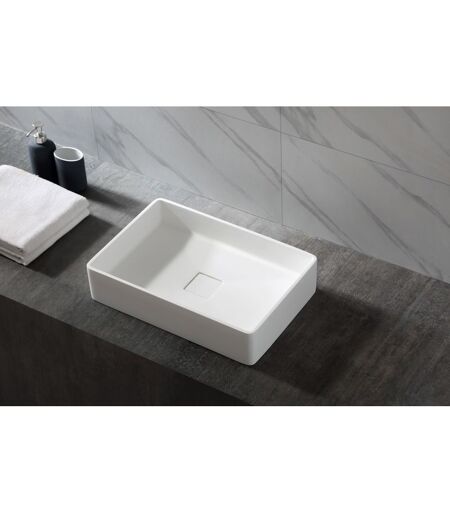DESIGN: Questo lavabo free-standing senza rubinetto è realizzato in fusione minerale con finitura bianca opaca. Con la sua forma estetica e di design, da installare su un piano di lavoro o un mobile esistente, vi permetterà di vestire il vostro bagno o la vostra toilette con eleganza e stile. PRATICITÀ : Questo lavamani di 48cmx32cmx10,5cm è universale e si adatta con eleganza alla maggior parte dei mobili da bagno. La piletta di scarico Pop-up con filtro in minerale fuso è integrata e fornita in dotazione. RESISTENTE E DUREVOLE: Questo lavabo da 7 kg ha un eccellente isolamento termico, che lo rende molto resistente al calore. Garantito per 2 anni. FACILE DA PULIRE: questo lavabo ha una superficie liscia, non porosa e antibatterica, che lo rende facile da pulire ed estremamente igienico. BACINO UNIVERSALE: progettato per adattarsi alla maggior parte delle console o dei sottolavabi. Inoltre, è adatto a tutti i tipi di rifiuti, in conformità alla norma DIN . ...