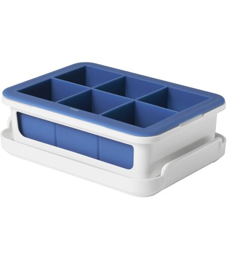 Oxo Good Grips, vaschetta per cubetti di ghiaccio a tenuta stagna con coperchio per cubetti di ghiaccio di grandi dimensioni, in silicone, bianco/blu