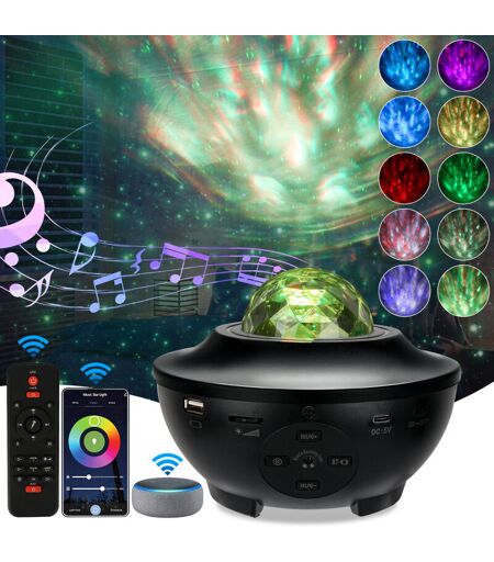 Proiettore a stella a LED con luce notturna musicale ti porta nell'atmosfera del pianeta e dell'universo. Tramite il telecomando puoi scegliere i colori che vuoi abbinare in 10 diverse modalità di illuminazione: Colori singoli o misti. ciclo monocromatico e ciclo bicolore. Il proiettore per luce notturna ha un altoparlante integrato. basta premere il pulsante di conversione USB/Bluetooth del proiettore per cambiare modalità. Goditi la tua musica preferita in un'atmosfera piacevole. Il nuovo tipo di sfarfallio è attivato dal suono. Puoi cambiare i colori al ritmo della musica o battere le mani. Display rotante e velocità regolabile con il telecomando. La luce del proiettore può fornire una visualizzazione della nebbia statica o fluttuante. La luminosità di questa luce notturna può essere regolata liberamente in base alle tue esigenze per te e il tuo bambino per creare un meraviglioso ambiente per dormire. Con il timer integrato da 1 ora e 2 ore. puoi addormentarti e si spegnerà da ...