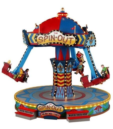 Title: The Spin Out SKU#: 44361 Description: Step into the whirlwind excitement of 'The Spin Out,' where laughter and adrenaline collide in a dazzling carnival ride. People spin and whirl, caught in the thrill of the moment, while the vibrant lights paint the night with a vivid tapestry of colors. Come and try this exhilarating, heart-pounding ride for an unforgettable, fun night with your loved ones! Approx. size (H x W x D) 10.24 x 11.42 x 12.01 inches 26 x 29 x 30.5 cm Year Released: 2024 Product type: Sights and Sounds Control switch: Volume Control and Power Switch for all functions. Electrical: Adaptor included Village: Carnival ...
