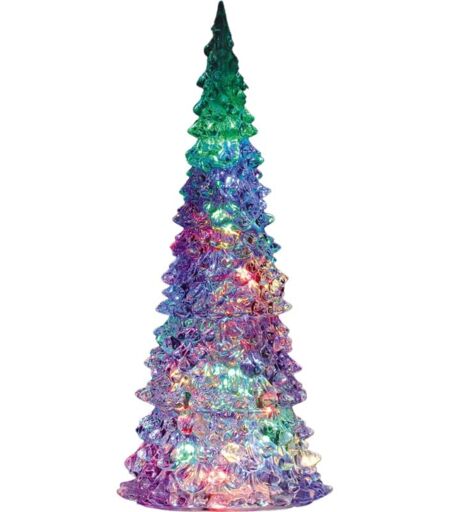 LEMAX Decorazione "Albero illuminato in cristallo 4 colori mutevole" per Villaggio di Natale e presepe, in Plastica da h 11,4 cm