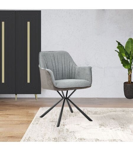 TOSCOHOME Sedia con braccioli tessuto grigio con retro ecopelle e gambe nere - Kaila