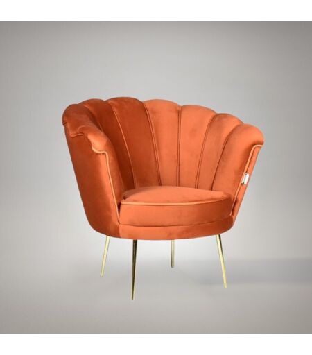 TOSCOHOME Poltrona a conchiglia in velluto colore arancio e gambe oro - Orel