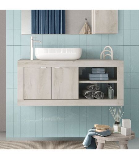 TOSCOHOME Mobile bagno sospeso con lavabo appoggio colore pino bianco 110x47H cm - Bax