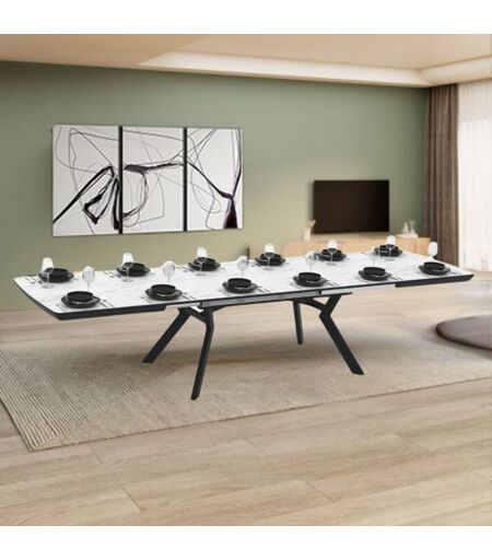 TOSCOHOME Tavolo rettangolare piano effetto marmo bianco opaco e gambe in metallo 160x100x76H allungabile a 360 Robat