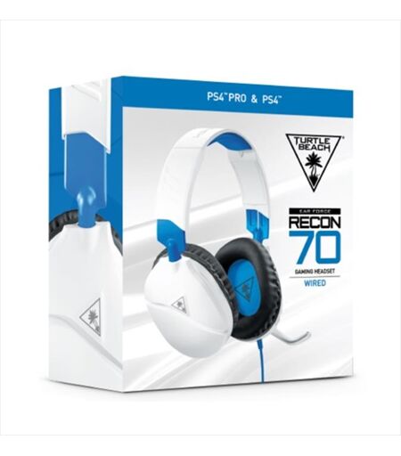 Recon 70P White - Con le cuffie da gioco Turtle Beach® Recon 70 per PS4™ Pro e PS4™ il prossimo vincitore sarai tu! Le cuffie da gioco Turtle Beach® Recon 70 presentano il nuovo design di Turtle Beach all'insegna della leggerezza che garantisce ore e ore di gioco nel massimo comfort. Grazie agli altoparlanti da 40 mm di alta qualità e ai cuscinetti over-ear premium in pelle sintetica, potrai godere appieno di alti sfrigolanti e bassi tuonanti senza l'intrusione di rumori esterni. Il famoso microfono ad alta sensibilità di Turtle Beach capta la tua voce in modo forte e chiaro e attiva il mute quando viene sollevato. Il versatile collegamento da 3,5 mm, infine, le rende interscambiabili con i controller PS4™, Xbox One, Nintendo Switch, con i PC e tutti i dispositivi compatibili. ...