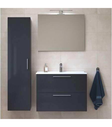 Vitra Mia Mobile lavabo 79x61x39,5 cm per bagno con specchio, lavabo e illuminazione a LED, Antracite lucido (MIASET80A)