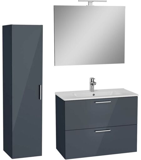 Vitra Set Mia Set di mobili 79x61x39,5 cm con specchio, lavabo, illuminazione led + armadio 145x35x35cm, Antracite lucido -