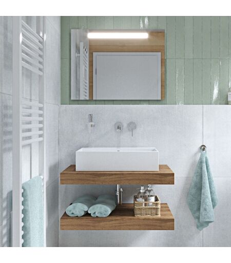 Ideal Standard Pack con lavabo 60 x 42 cm + piano lavabo 100x8x50 cm marrone chiaro + rubinetteria per piano lavabo (EggerStrada -