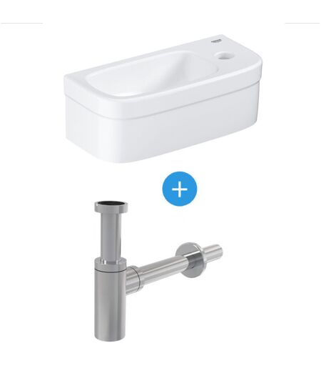 Grohe Lavamano in ceramica Euro 370 x 180 mm + sifone in metallo Alca Chrome (39327000-SET) -